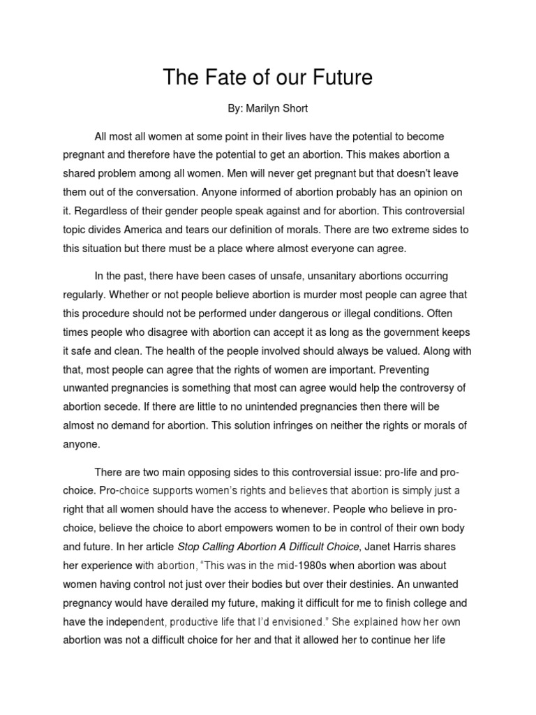 It is my personal belief that an unborn fetus is not a living being. Abortion remains a heavily stigmatized subject, especially in a country as rooted to religion as the Philippines. Abortion debate, Fertility, Pregnancy, Pro-choice, Pro-life movement. It is ironic that, while a teenage girl must obtain parental consent for such a minor procedure as having her ears pierced, for her to lay her life on the line as well as that of her abortion opinion essay child and obtain an abortion, no parental Abortion debate, Abortion law, Aspect of the abortion, Birth control, California Penal Code, Child health, Effects of abortion, Fertility, Financial issues.